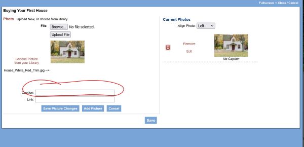 - How do I add a caption to a photo I have already added to a blog entry?